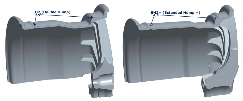 Als Hump bezeichnet man die rundumlaufenden Höcker an der Felgenschulter. Diese dienen der Querbelastung, dass sich der Reifen bei zu geringem Luftdruck und starker Belastung auf der Felge nicht bewegt. Die gängisten Humpausführungen sind der H2 und EH2+.